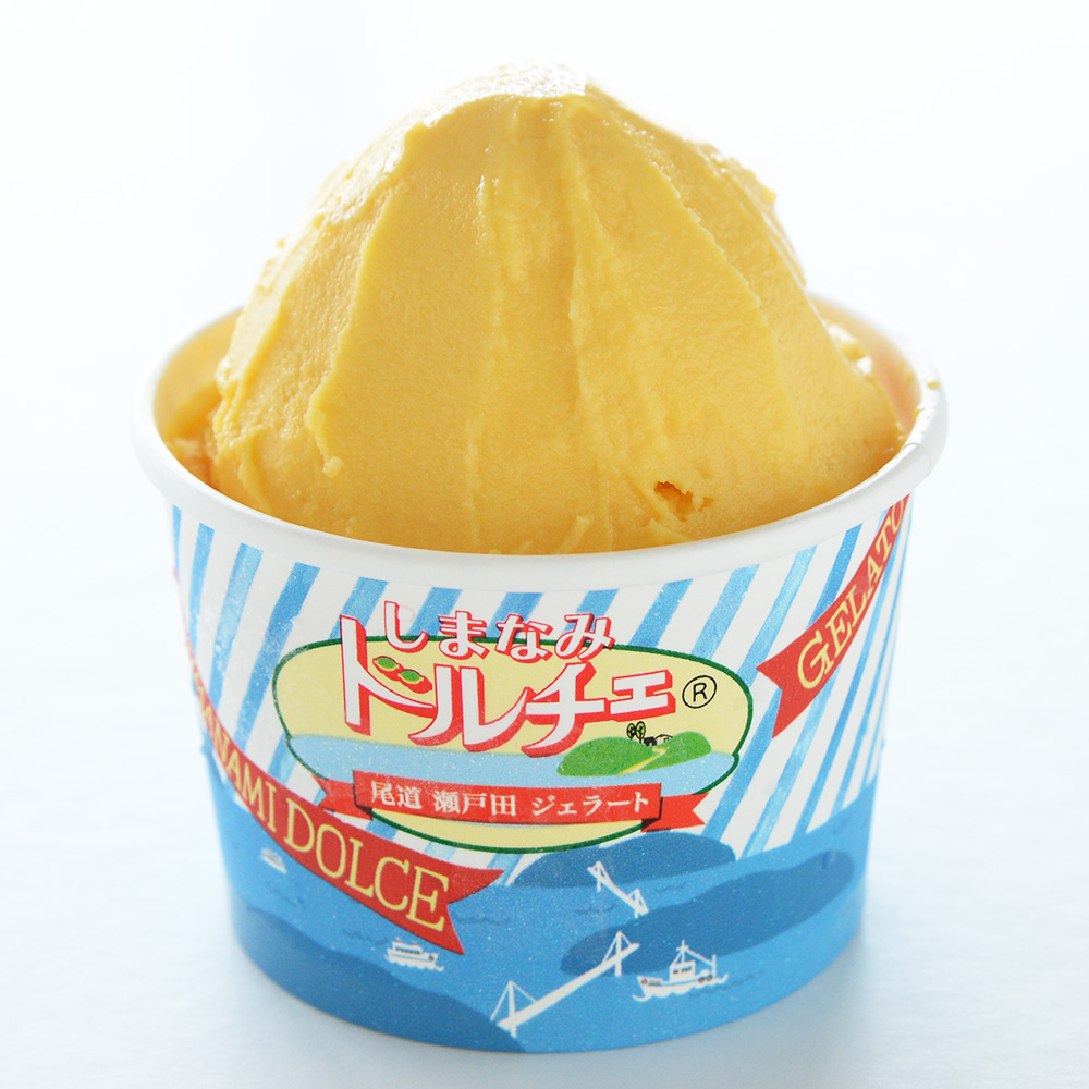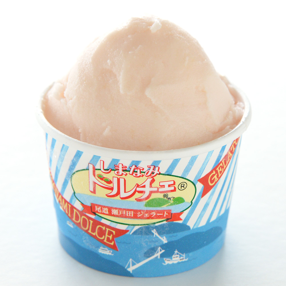 尾道産の桃の果肉がたっぷり入ったシャーベット。桃そのものの風味を活かした優しい甘さが特徴です。大人も子どもも大好きな味!